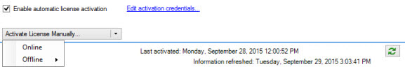 - A drop-down list for manually activating licenses online or offline. For more information, see Activate licenses online and Activate licenses offline