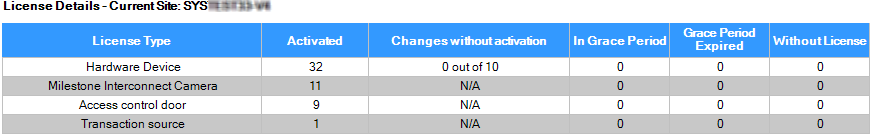 When the requirements above are met, the system activates your hardware devices or other licenses a few minutes after you have added, removed or replaced hardware devices or made other changes that affect the use of your licenses. Therefore, you never have to manually start a license activation. The number of used device changes without activation is always zero. No hardware devices are within a grace period and at risk of expiring. If one of your base licenses expires within a period of 14 days, your XProtect system will also - as an extra precaution - automatically try to activate your licenses every night.