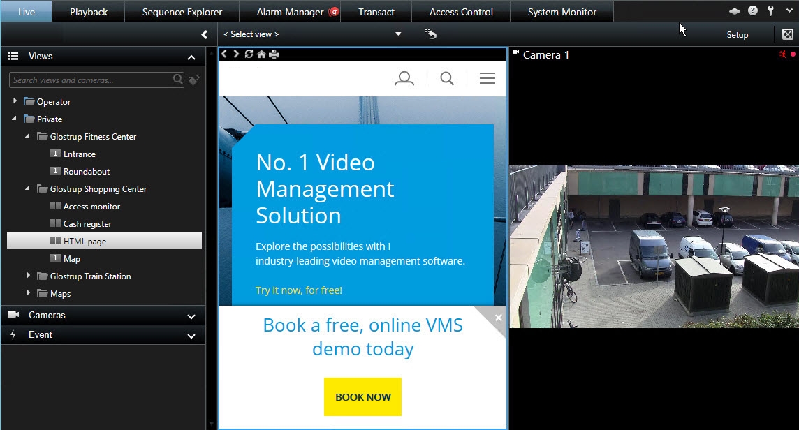 Apart from cameras, there are other types of content that you can add to the views, for example alarms, hotspots, and smart maps: