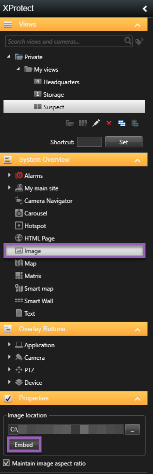 - To make the image available to others who cannot access the location of the image file, on the Properties pane, click Embed. The file is stored in the system.