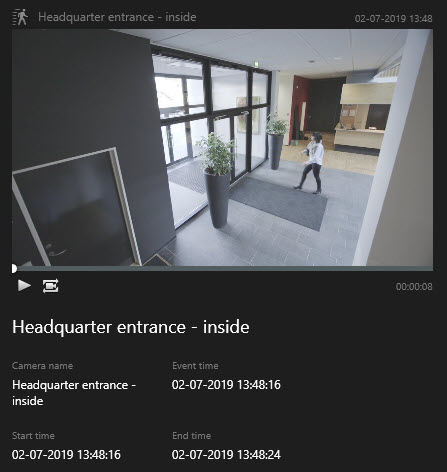 To preview the video sequence and bookmark details, select a search result and play back the video in the preview pane on the right-hand side.