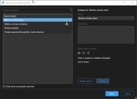 You can save your searches to reuse them and share them with other operatorsA professional user of an XProtect client application.. Depending on your user rights, you can also access and use the searches made by others, unless they are private. When a search has been saved, you can: