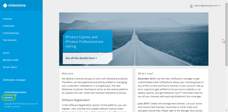 - Log in to Milestone Customer Dashboard (https://online.milestonesys.com/).