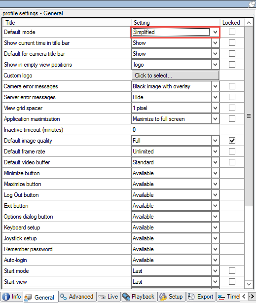 - In the Default Smart Client mode list, select Simplified. XProtect Smart Client now opens in simplified mode for those users associated with the current Smart Client profile.