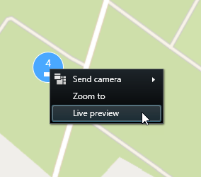 Tiene diferentes opciones cuando hace clic con el botón derecho del ratón en un grupo, o en uno o más dispositivos seleccionados, por ejemplo Previsualización en directo: