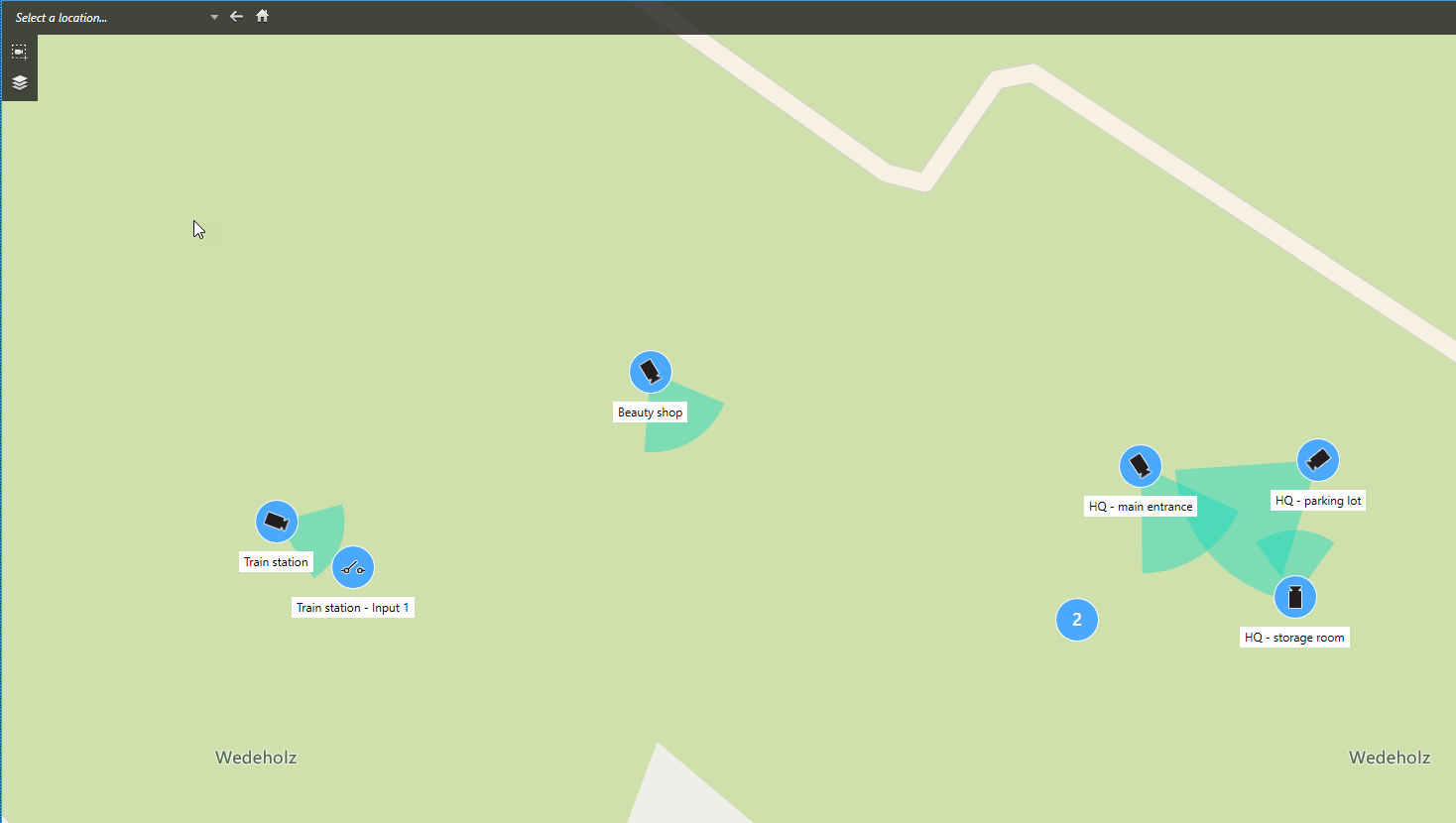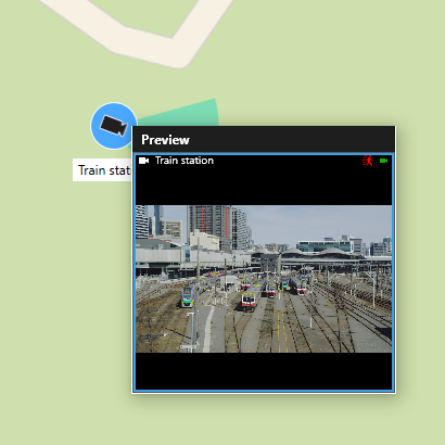 - Haga clic en las cámaras que le interesen. Al hacer clic, la entrada de vídeo se muestra en el elemento de vista del hotspot.