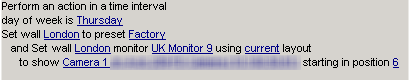 By combining rules and Smart Wall presets, you can control what is displayed on your video wall. For example, a rule can trigger your video wall to display a certain Smart Wall preset during a certain day. You can even use rules to control what individual monitors display.