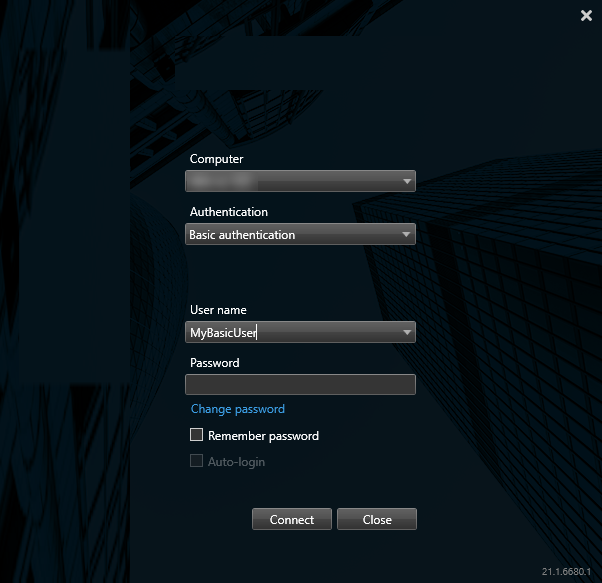 Autenticación básica - seleccione esta opción para iniciar la sesión como usuario básico. Los usuarios básicos están definidos por su administrador de sistema en XProtect Management Client