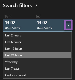 Haga clic en la flecha para seleccionar un lapso de tiempo predefinido, o defina su propio intervalo personalizado.