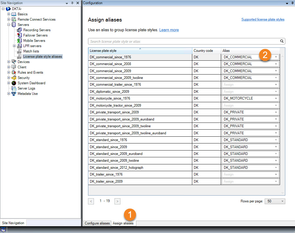 Next, let's group license plate styles into aliases by assigning the new aliases to the license plate styles.
