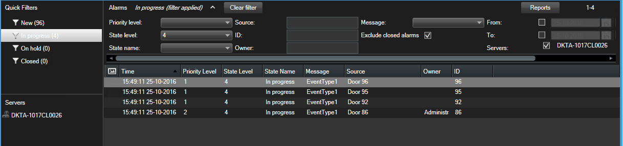 - Klicka på knappen Rensa filter för att återgå till den ofiltrerade larmlistan.