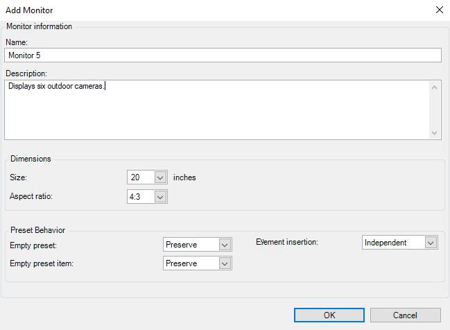 4. (valfritt) För varje bildskärm, välj en förinställning, definiera dess vylayout och lägg till standardkamerorna. Se även Definiera vylayout och lägg till kameror.