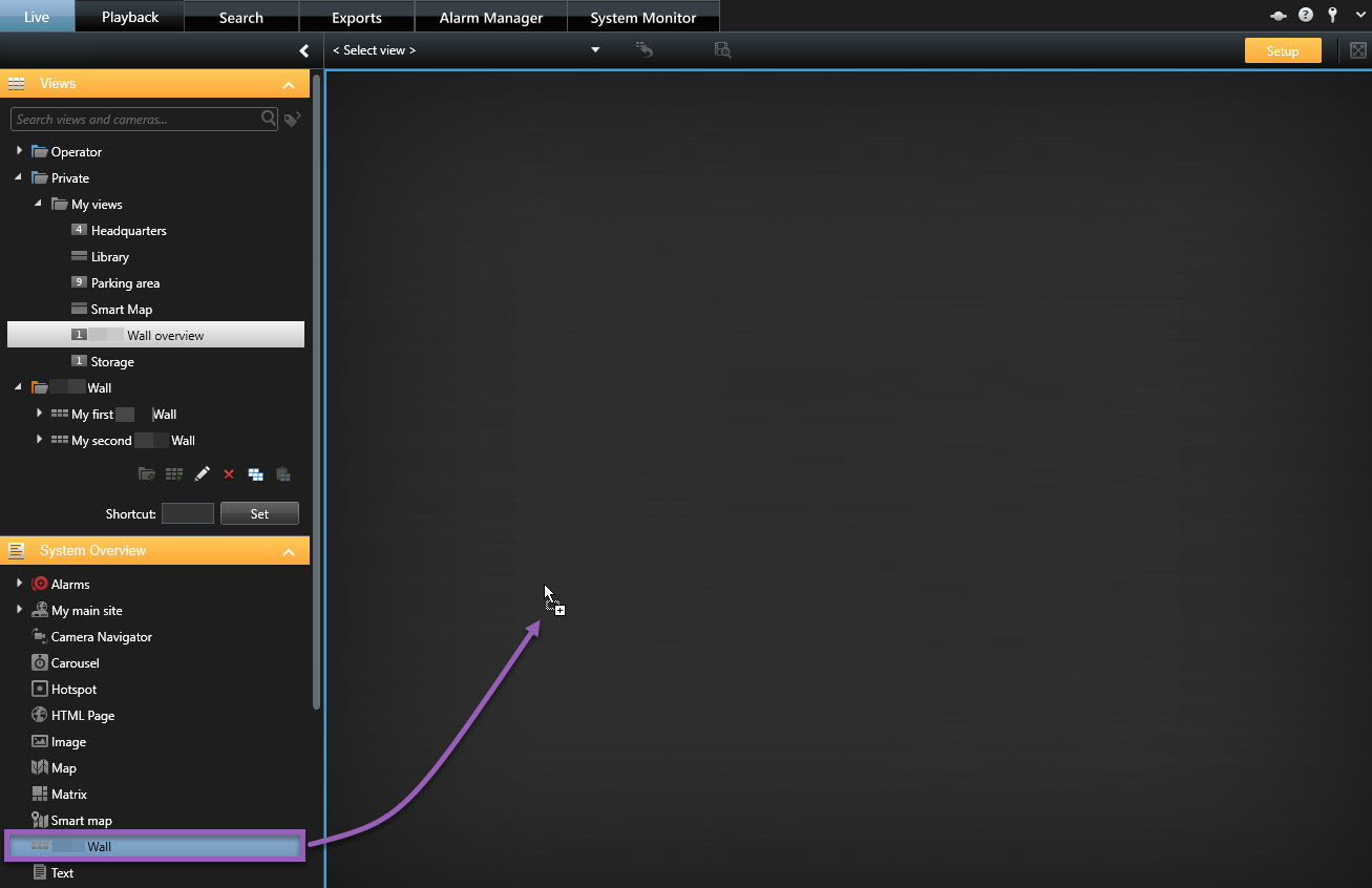 3. I fönstret Systemöversikt, dra objektet Smart Wall till relevant visningselement.