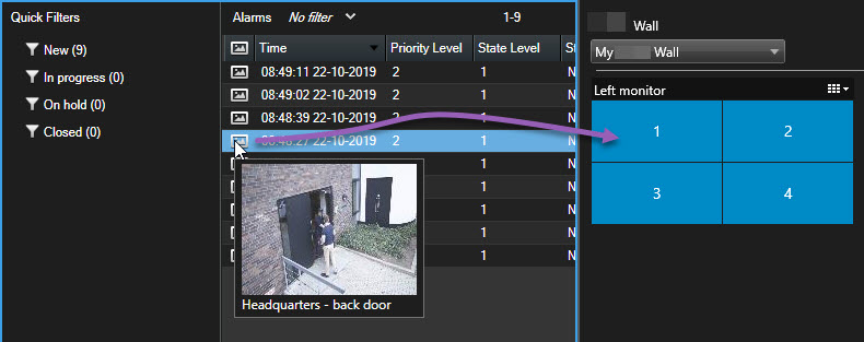 Du kan också visa individuella larm på din videovägg genom att dra och släppa larmet från Larmlistan.