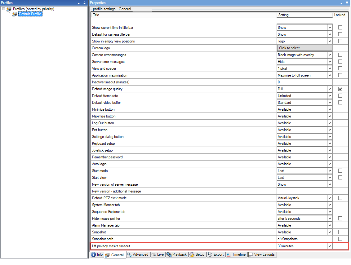 Change the timeout for lifted privacy masks