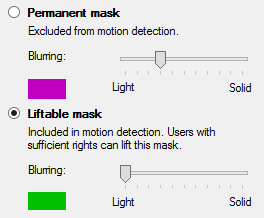 - Define how the covering of the areas should appear in the video when shown in the clients. Use the sliders to go from a light blurring to a full nontransparent mask.