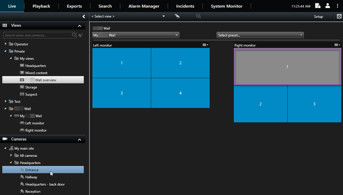 You can also change the view layout of the Smart Wall monitors, for example if you need to add more cameras. See also Change view layout of Smart Wall monitors.
