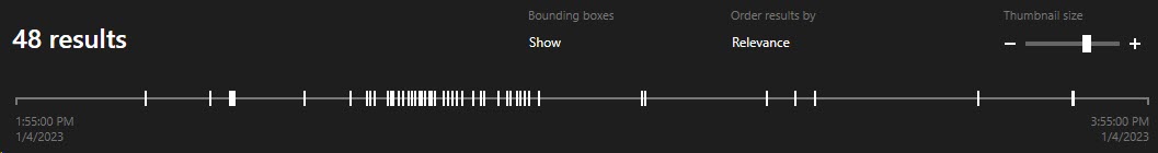 During search, bounding boxes help you identify objects, for example based on motion detection. You can turn the bounding boxes on or off.
